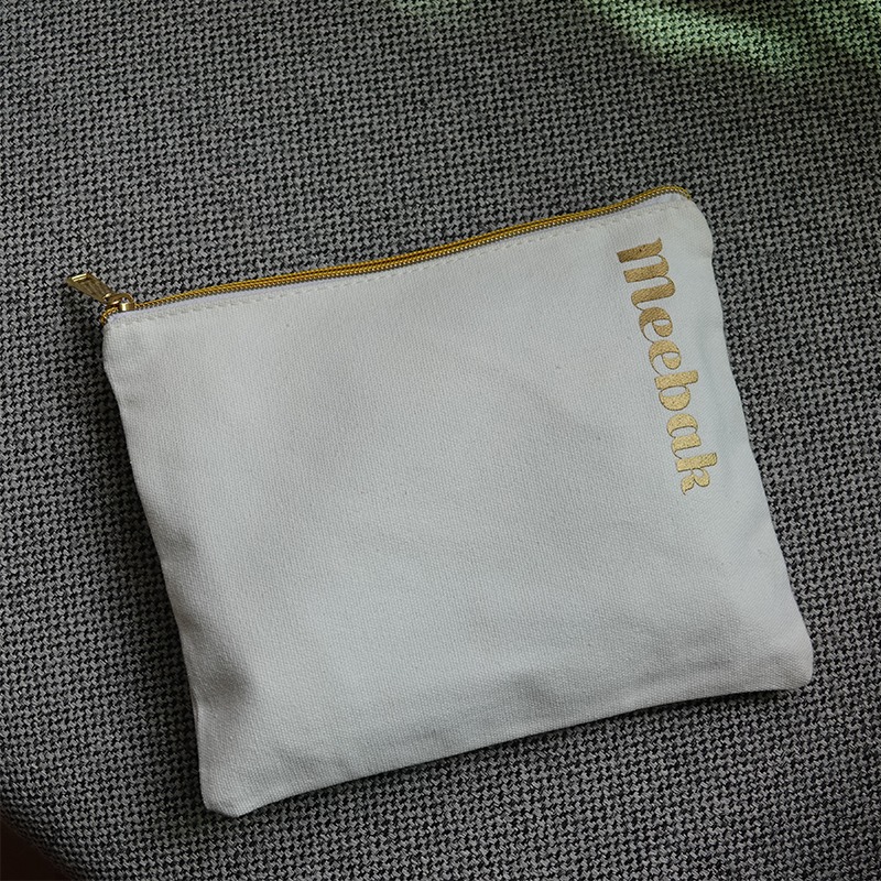 Custom logo cotton makeup pouch bag canvas cosmetic bag gold zipper cotton canvas makeup bag with cotton lining inside