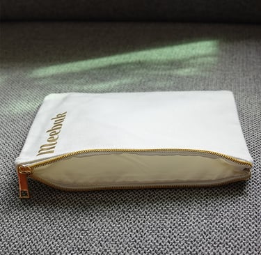 On the inside, a lining made of 5oz white cotton complements the external material perfectly. This cotton lining is soft to the touch and gentle on the items stored within, minimizing the risk of damage to cosmetics or skincare products. The lightweight cotton helps in keeping the makeup pouch versatile and easy to carry, making it suitable for both casual outings and more formal occasions.