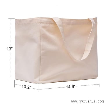 Durable 14oz Canvas Tote Handbag with 5 Interior Pockets Washable Natural Cotton Canvas Tote Bag Cotton Bag for Shopping RSQ-1229 Bag specification: 1. Material: 14oz=398gsm natural color canvas 2. Size: body 14.6(width)x13(height)x10.2(base & side gusset)inch =37x33x26cm, handle 1.18x19.68inch=3.0x50cm with reinforced X sewing 3. Interior pockets: 2pcs pockets: 7.28(width)x13(height)inch=18.5*33cm + 3pcs pockets: 4.72(width)x13(height)inch=12*33cm 4. Model number: RSQ-1229