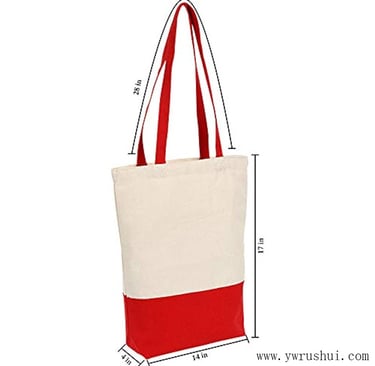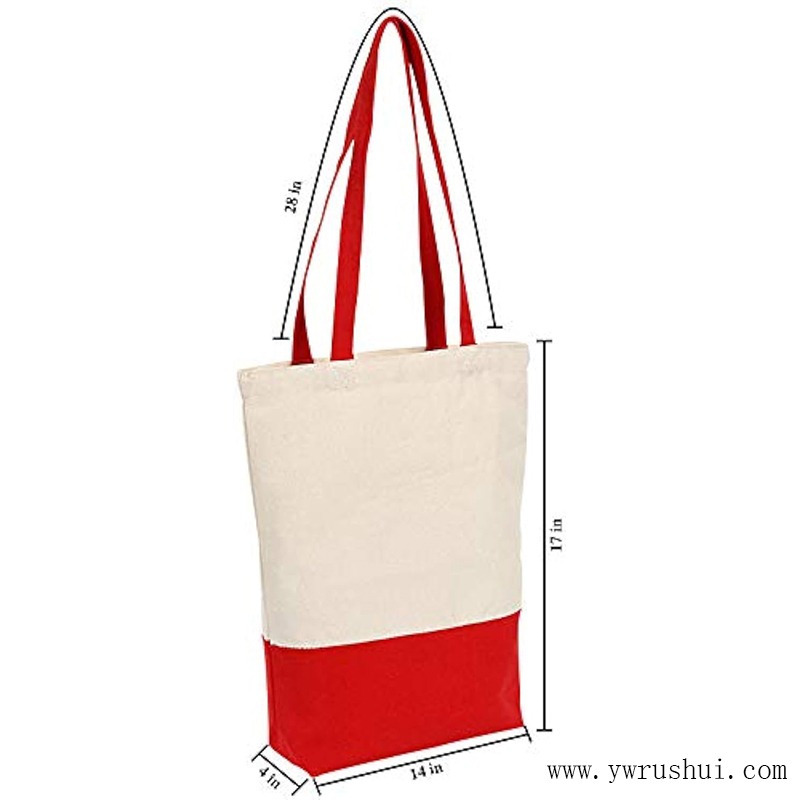 Heavy Duty 12oz Cotton Totebag Natural Cotton Canvas Handbag with Red Bottom Gusset & Red Handles Grocery Beach Shopping Bag Bag specification: 1. Material: 12oz=340gsm natural +red color canvas 2. Size: body 14(width)x17(height)x4(base gusset)inch =35.5x43x10cm, handle 1.0x28inch=2.5x71cm with reinforced X sewing 3. Model number: RSQ-1429