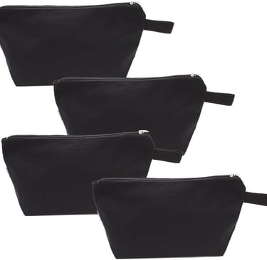 Trousse de toilette 100 % coton en toile unie, résistante, fermeture éclair, multifonction, trousse de toilette, maquillage, crayon, noire, pour femme tendance. Caractéristiques : 1. Matériau : toile noire 453 g avec fermeture éclair, poignée rayée sur le côté et étiquette tissée cousue sur l'autre face, sans doublure intérieure. 2. Dimensions : Petit : 22 x 12 x 7 cm (soufflet de base uniquement), Moyen : 26,5 x 14 x 9 cm (soufflet de base uniquement), Grand : 33 x 17 x 10 cm (soufflet de base uniquement). 3. Référence : RSQ-1074