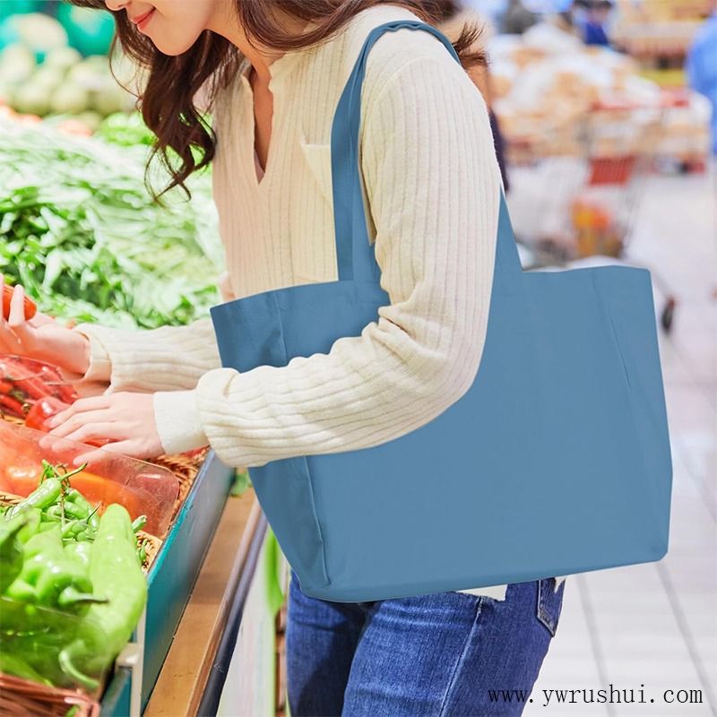 Sac à bandoulière en toile durable 340 g, pliable, avec logo personnalisé, réutilisable, en coton vierge, avec poche, RSQ-1228 Caractéristiques du sac : 1. Matériau : toile bleue 340 g/m² 2. Dimensions : corps : 38,6 x 30 x 18 cm, 2 anses longues : 3,3 x 61 cm, 2 anses courtes : 3,3 x 30,5 cm 3. Poche intérieure : 16 x 20 cm 4. Numéro de modèle : RSQ-1228