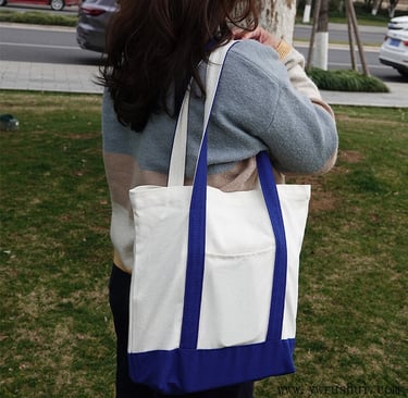 Le sac cabas polyvalent en toile RSQ-1424, doté d'une poche extérieure, présente une combinaison saisissante de beige et de bleu, offrant une esthétique attrayante alliant neutralité et dynamisme. L'utilisation du beige comme couleur de base confère une élégance discrète, tandis que les touches de bleu apportent une touche contemporaine. Cette palette de couleurs rehausse non seulement l'esthétique du sac, mais contribue également à sa polyvalence, le rendant adapté à de nombreuses occasions, des sorties décontractées aux événements semi-formels.