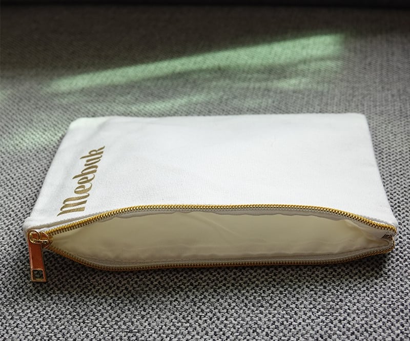 Trousse de maquillage en coton avec logo personnalisé, trousse de maquillage en toile, trousse de maquillage en toile de coton avec fermeture éclair dorée et doublure en coton à l'intérieur